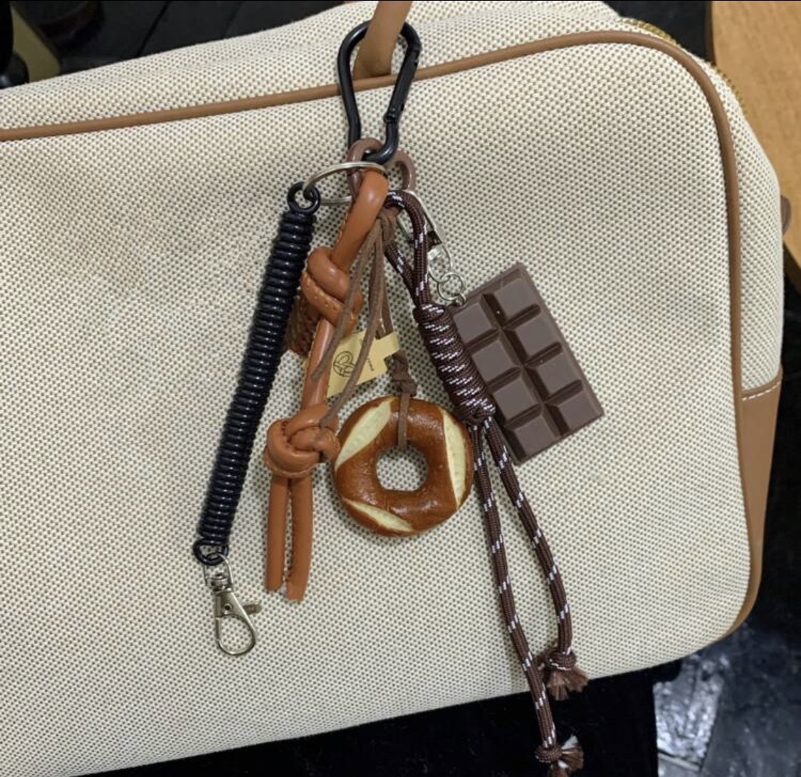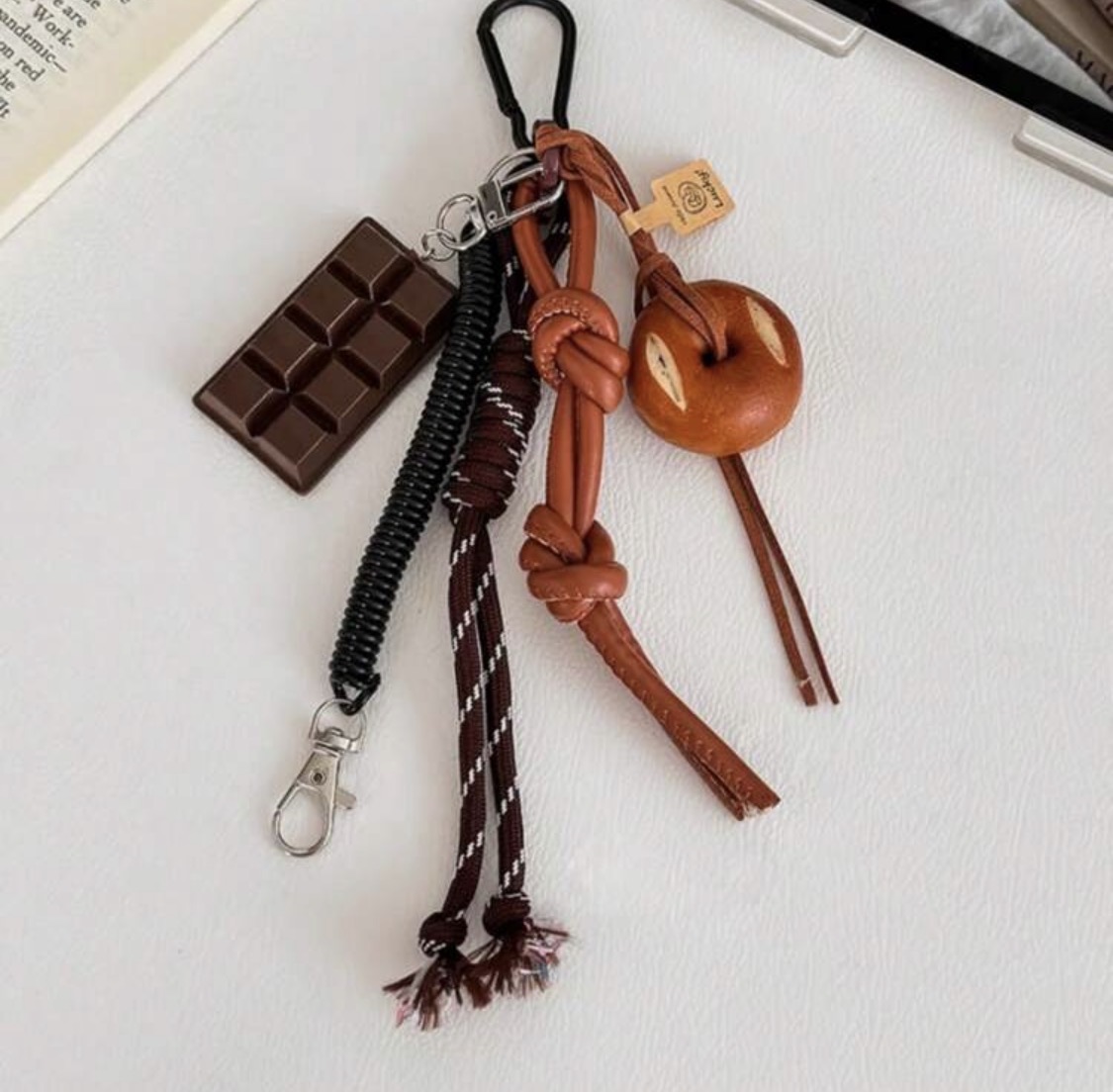 سحر حقيبة DIY بسيط - سلسلة مفاتيح خبز العجين المخمر، حلية تزيين الشوكولاتة، قلادة سيارة مصنوعة يدويًا من الحبال، ديكور أنيق للتعليق على الخصر، مناسبة كهدية للأصدقاء والأحباء.