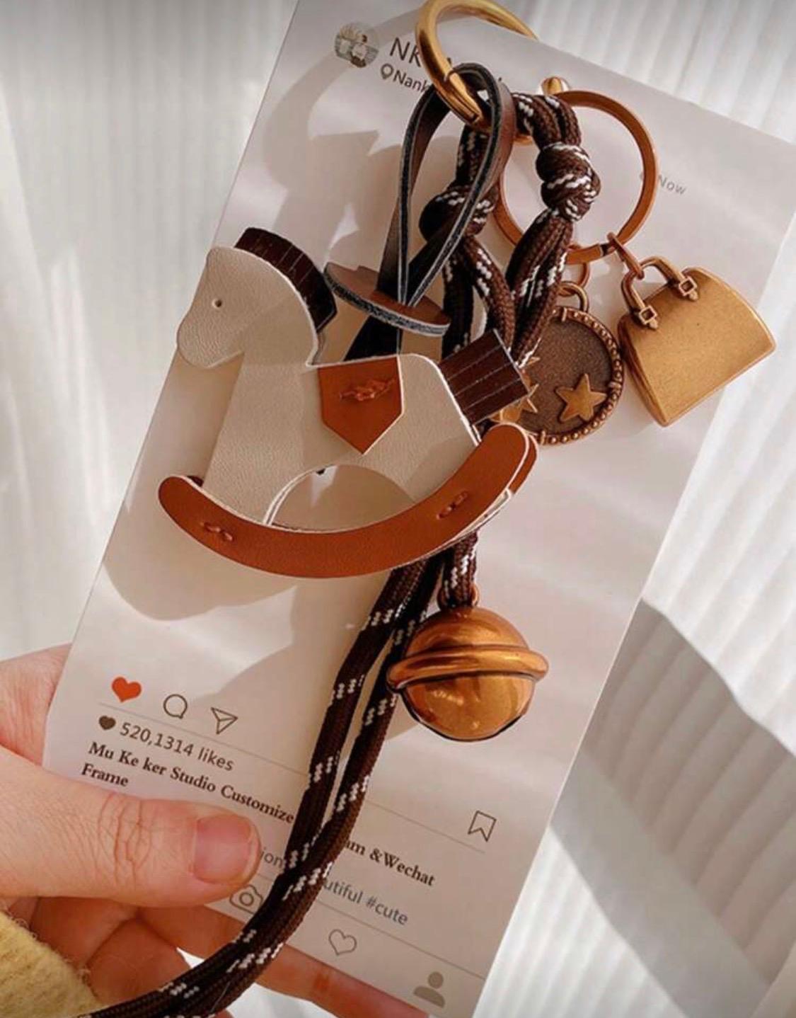 ميدالية للحقيبة على شكل حصان مع تعليقات مناسبة إضافية .